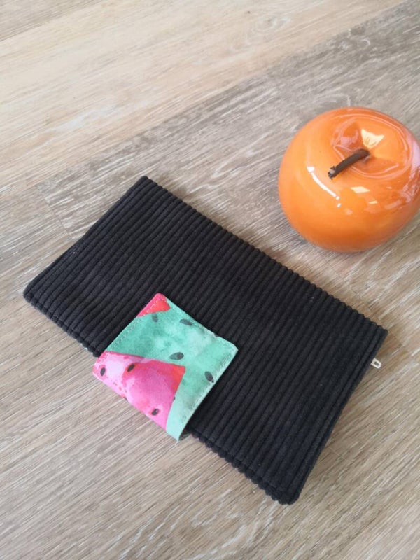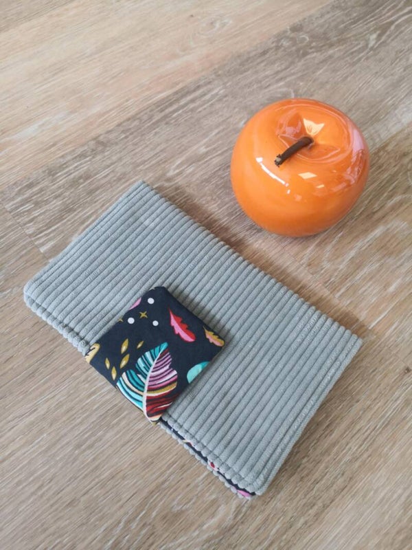 porte feuille en velours cotelé et tissu coton pour l'interieur.