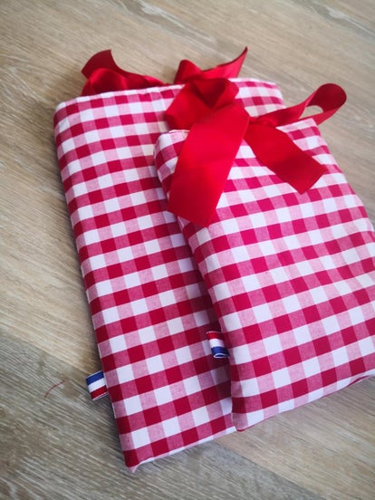 Protégez vos livres préférés avec style grâce à mes pochettes à livres matelassées, cousues à la main dans un tissu vichy , rose, moutarde, noir et même rouge !